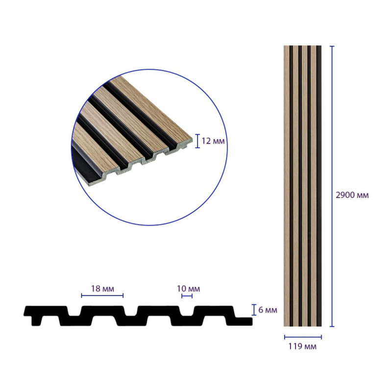 • Розміри: 119х2900х12 мм