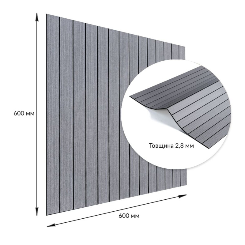Площадь покрытия: 600х600 – 0,36 м², 600х3000 мм – 1,8 м²
