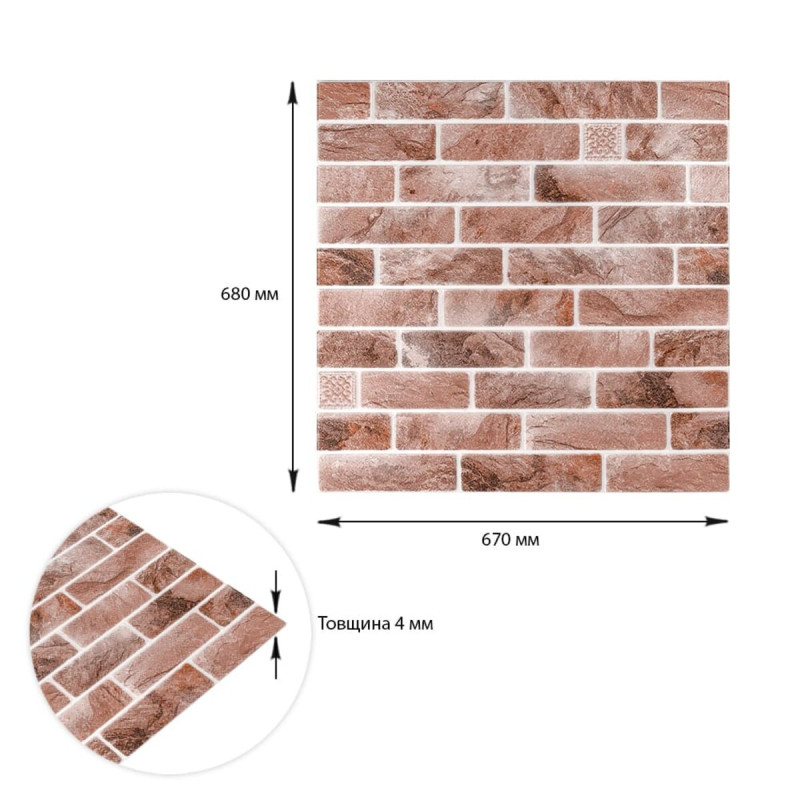 Панель стеновая 670х680х4мм Клинкер песчано-коричневый (D) SW-00002004