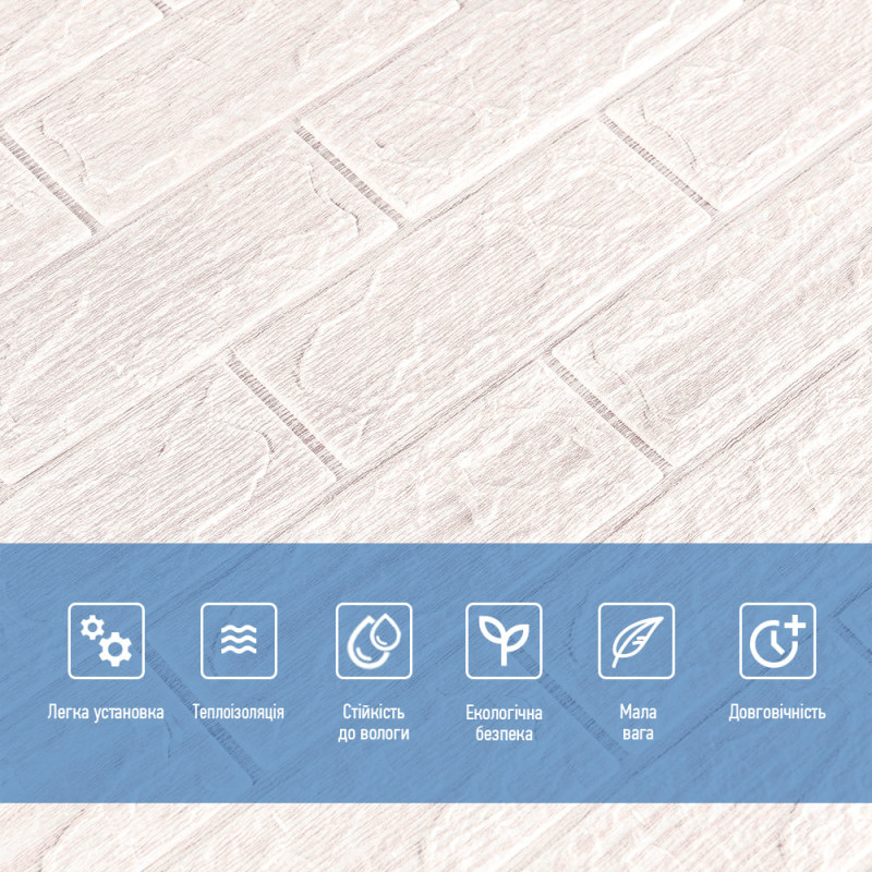 Самоклеющаяся декоративная 3D панель под кирпич слоновая кость с полоской 700x770x5мм