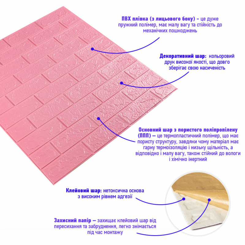 • 3D панель самоклеющаяся 700х770х3мм кирпич Розовый (004-3) SW-00000231