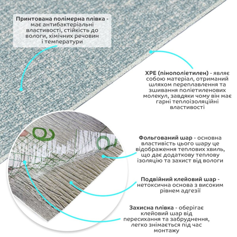 3. Теплоизоляция: Вспененный ХРЕ и фольгированный слой обеспечивают хорошую теплоизоляцию, что помогает поддерживать комфортную температуру в помещении.