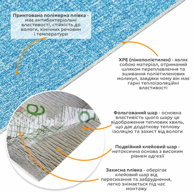 3. Теплоизоляция: Вспененный ХРЕ и фольгированный слой обеспечивают хорошую теплоизоляцию, что помогает поддерживать комфортную температуру в помещении.