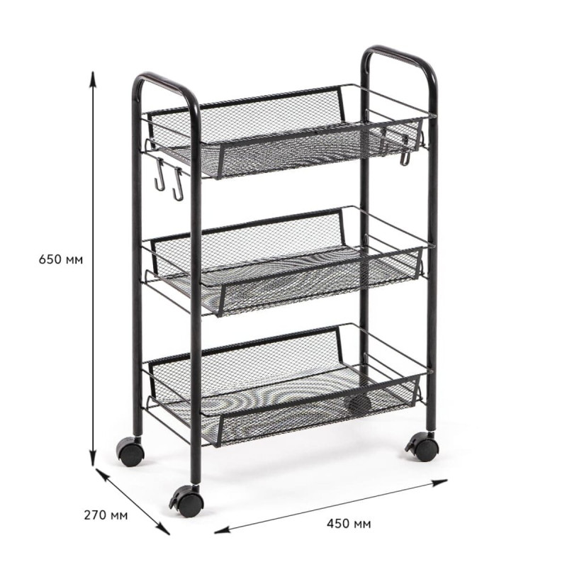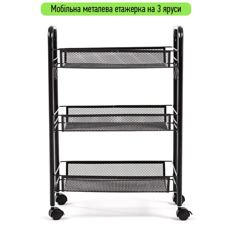 Этажерка мобильная трехъярусная универсальная из металла черная 45*27*65см SW-00002106