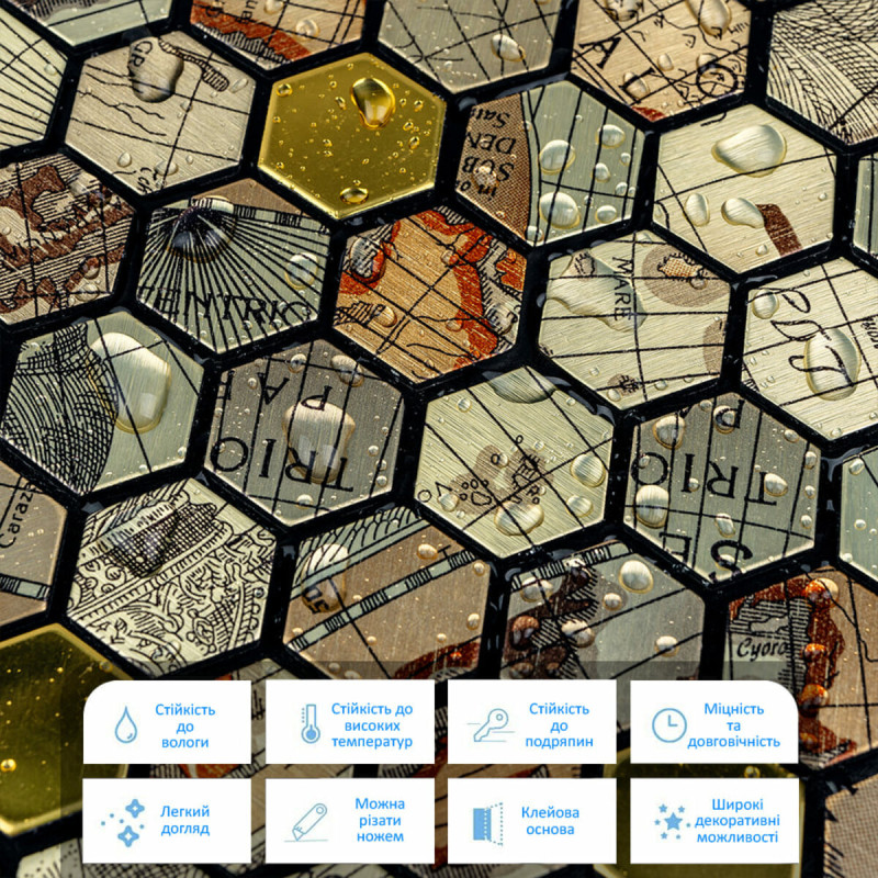 • Самоклеюча алюмінієва плитка 300х300х3мм Золота луска SW-00001934
