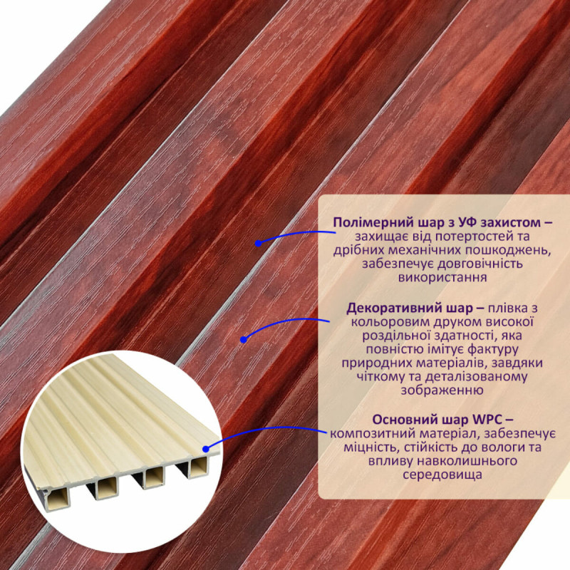 • Рейка декоративна WPC стінова 3000х160х23мм Махагон SW-00001531-