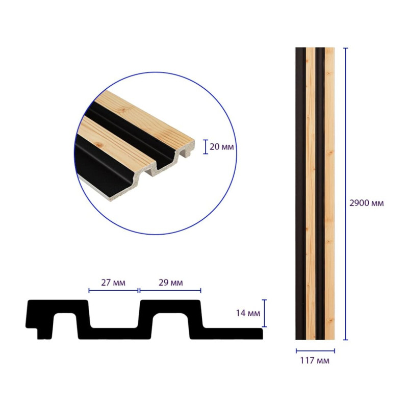 • Розміри: 117х2900х20 мм