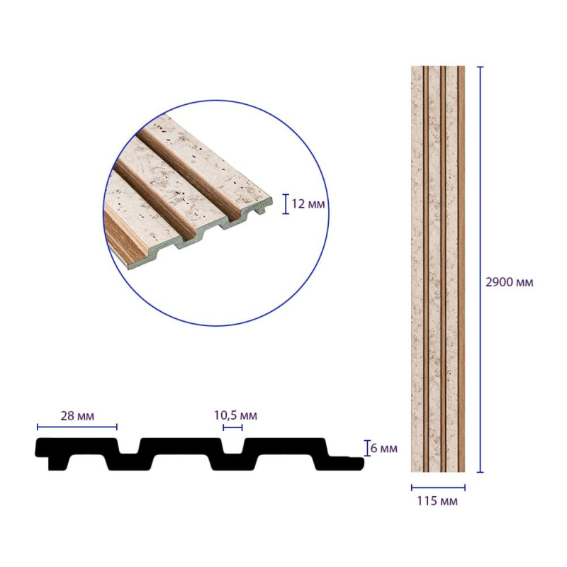 • Розміри: 115х2900х12 мм