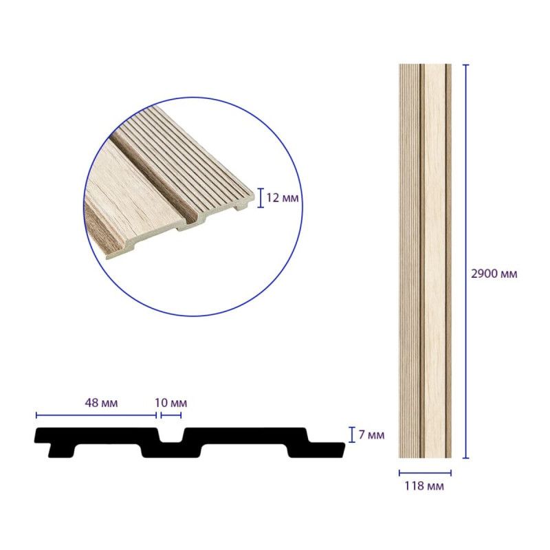 Рейка декоративна PS 2900х118х12мм Світле дерево SW-00001750
