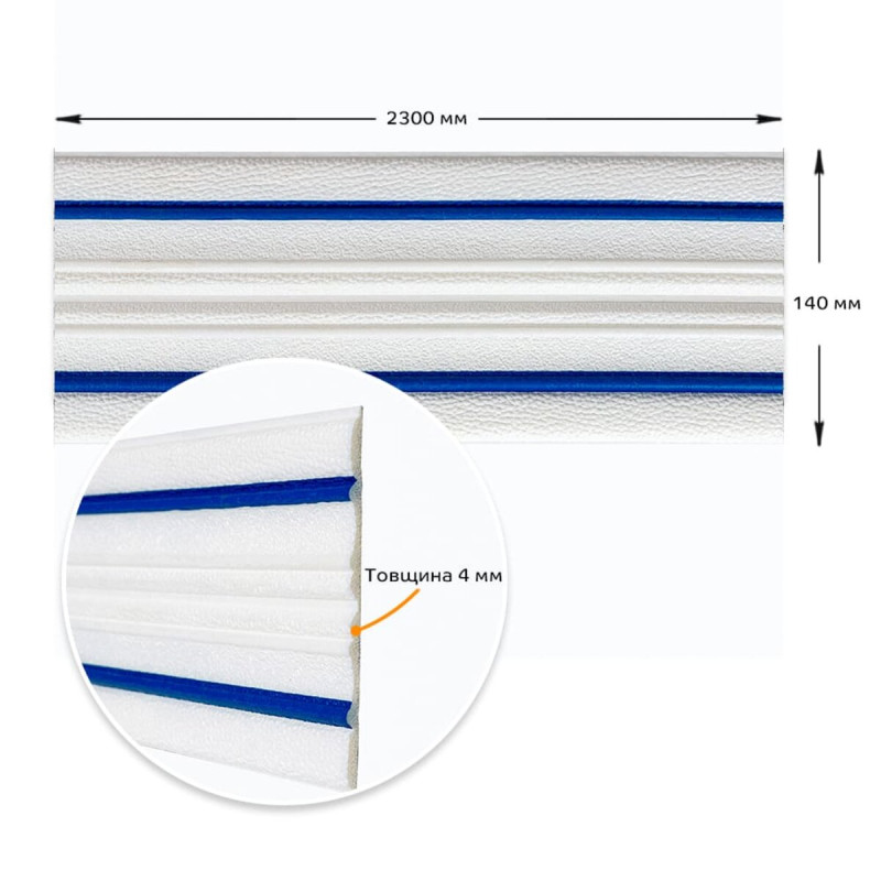 Плінтус РР самоклеючий 2300х140х4мм Білий з синьою смужкою (D) SW-00001811