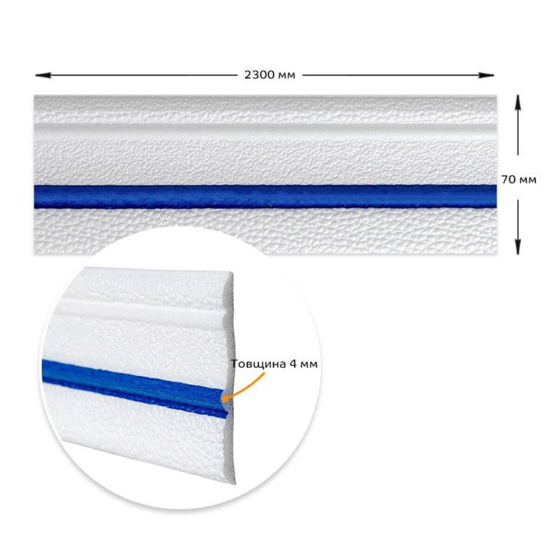 • Плінтус РР самоклеючий 2300х70х4мм Білий з синьою смужкою (D) SW-00001831