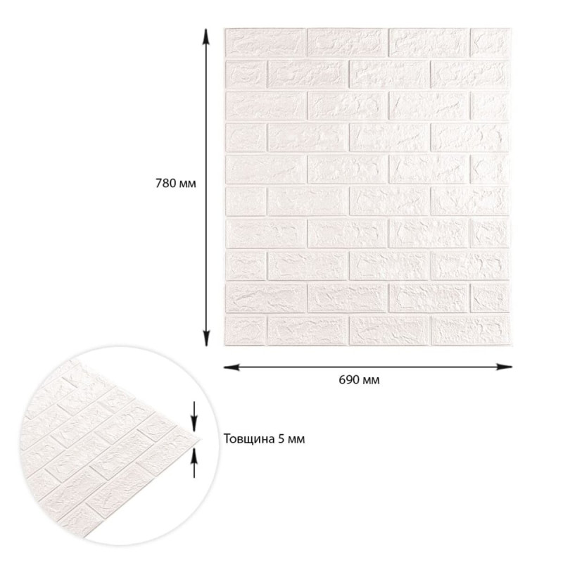 3D панель самоклеюча цегла 700х770х5мм Білий Матовий (001-5M) SW-00000587