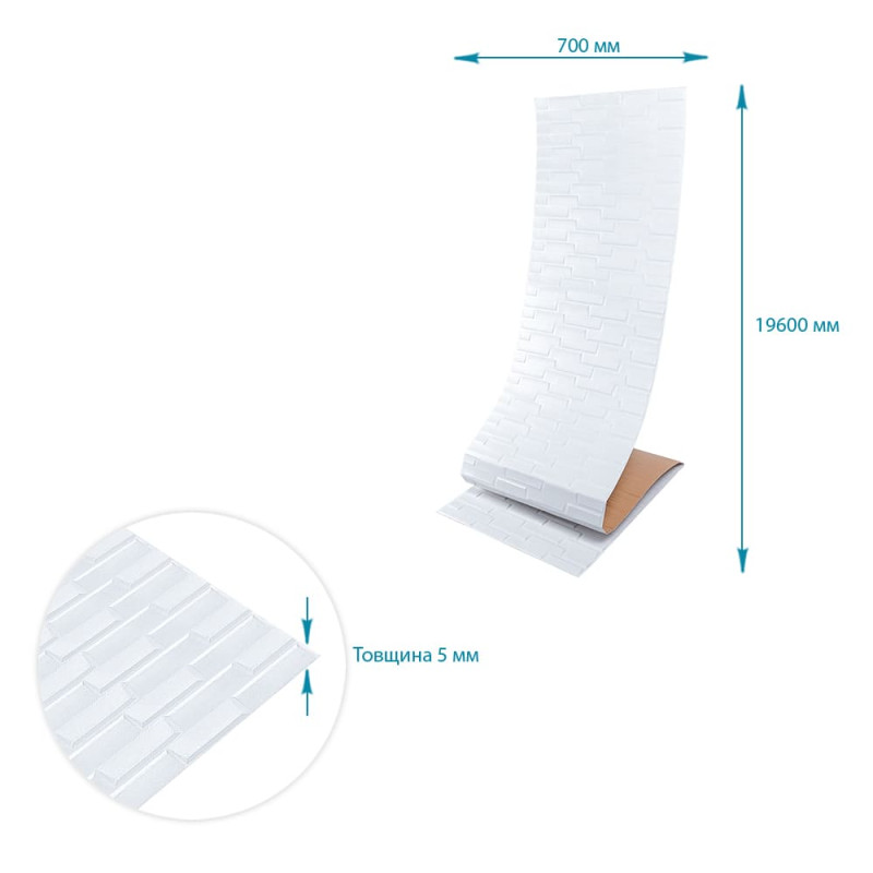 • Самоклеюча 3D панель 19600x700x5мм Біла Кладка SW-00001335