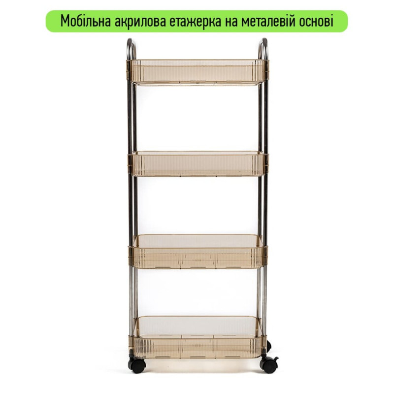 • Етажерка мобільна чотириярусна універсальна з акрилу та металу 40х28,5х95см Бежева SW-00002112